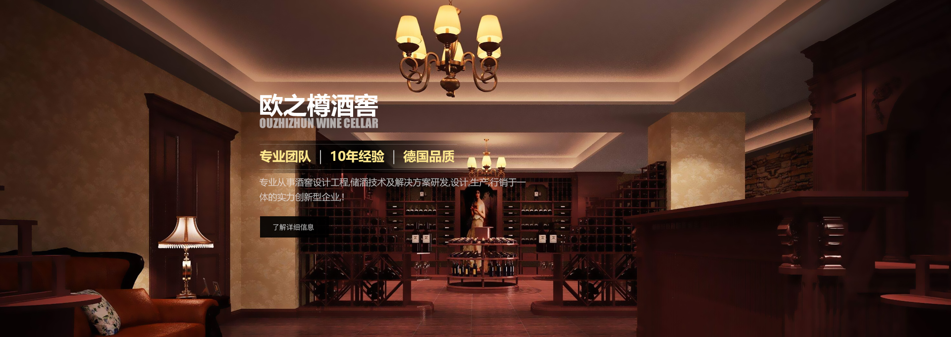 歐之樽酒窖專業(yè)的設(shè)計團隊,通過學習歐美成功酒窖的經(jīng)驗與國內(nèi)市場相結(jié)合,使得我們的設(shè)計充滿著歐美氣息的中國風。能讓你在緊張的城市氛圍中找到在大自然 中享受美酒的感覺。歐美進口的全自動控溫控濕系統(tǒng)既穩(wěn)定又方便,